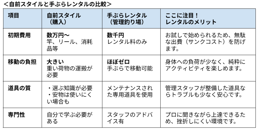 30年間、あらゆる水辺に立ってきた筆者が提案するのは、自分のスタイルに合った釣り場選び。特に初心者は、心身への負担が少ない「手ぶらで楽しむ釣り体験」が最適解です。