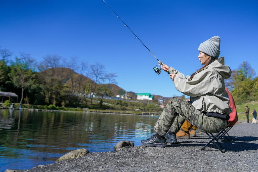 管理釣り場『Fishing Point ベリーズ迦葉山(かしょうざん)』は、泥臭さとは無縁の別世界。足場が完璧に整備されており、お気に入りのスニーカーで優雅に参加できます。