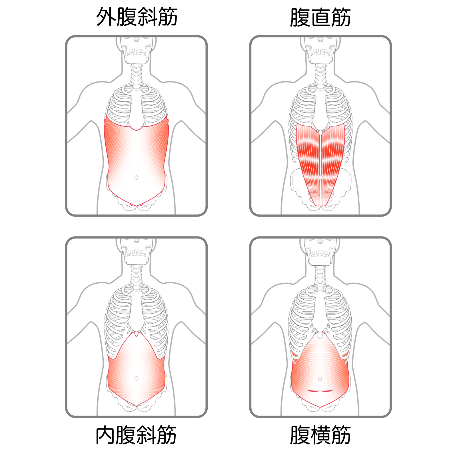お腹周りの引き締めを目指す場合、やみくもに腹筋運動をしても効率は上がりません。腹横筋、腹斜筋、腹直筋を意識して鍛えるのが有効です。