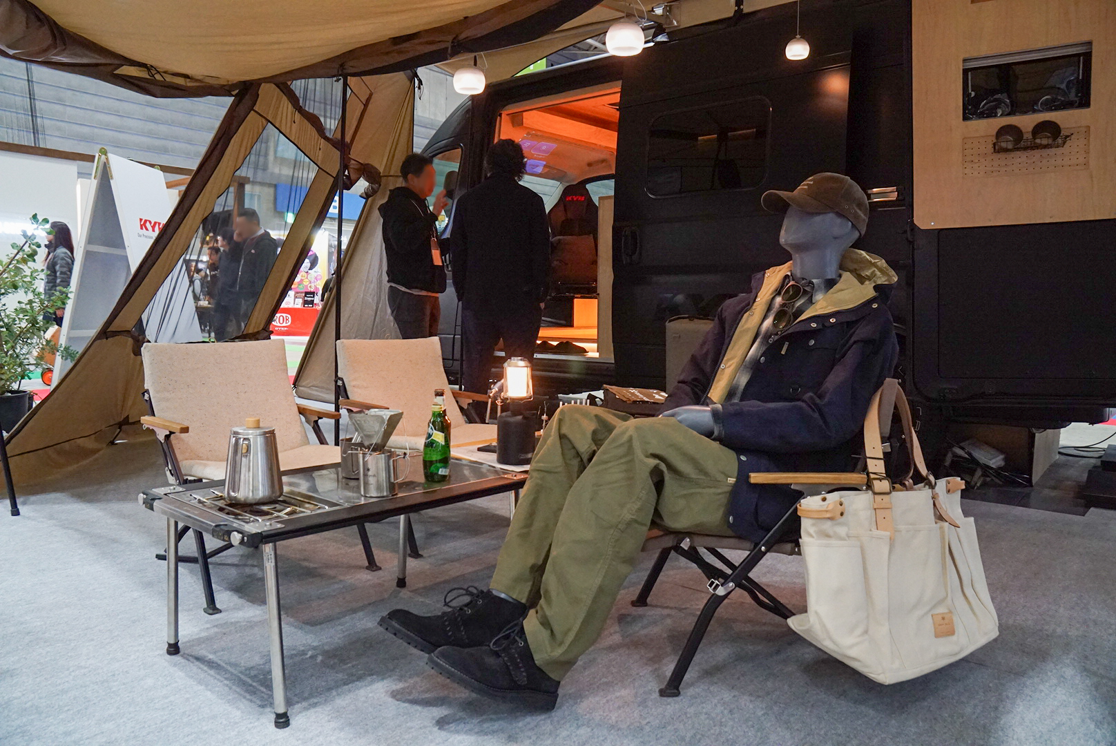 一方、来場者の度肝を抜いていたのが、著名なキャンプ用品ブランドが監修したキャンピングカー。