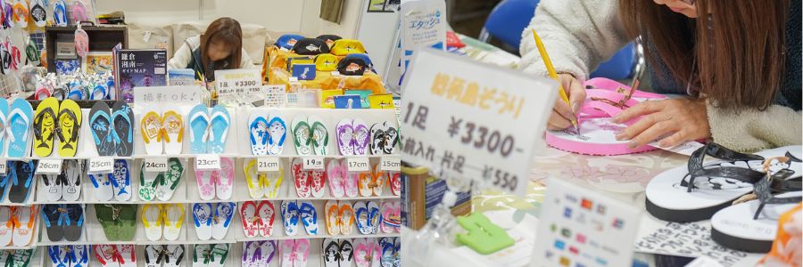 神社の近くには、海や魚をモチーフにした小物を扱う露店が軒を連ねています。中でも目を引いたのは、職人が一つひとつ手彫りで仕上げた魚サンダル。ユニークながらも愛らしいデザインは、フェスの思い出を持ち帰るのにぴったりなアイテムです。