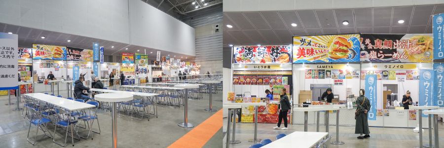市場に出回りにくい魚種を絶品グルメに変えるSDGsな取り組みや、全国の漁港から直送されたガチの漁師飯が軒を連ね、昼時には会場の外まで香ばしい匂いが漂っていました。