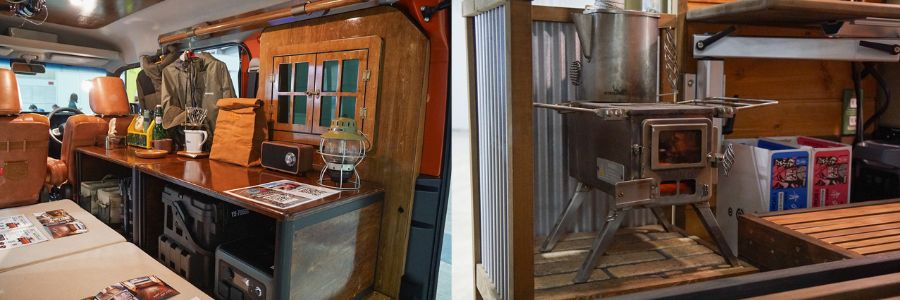釣れなくても、海辺でコーヒーを淹れて、車内でくつろぐ。釣りが単なる"魚捕り"ではなく、車中泊やキャンプと組み合わせた"ソト遊び"のハブになっていることを強く感じさせました。ある展示では、自分だけの時間を大切にしたい人のために、車内に薪ストーブを設置するなど、こだわりとロマンを感じるモデルも。