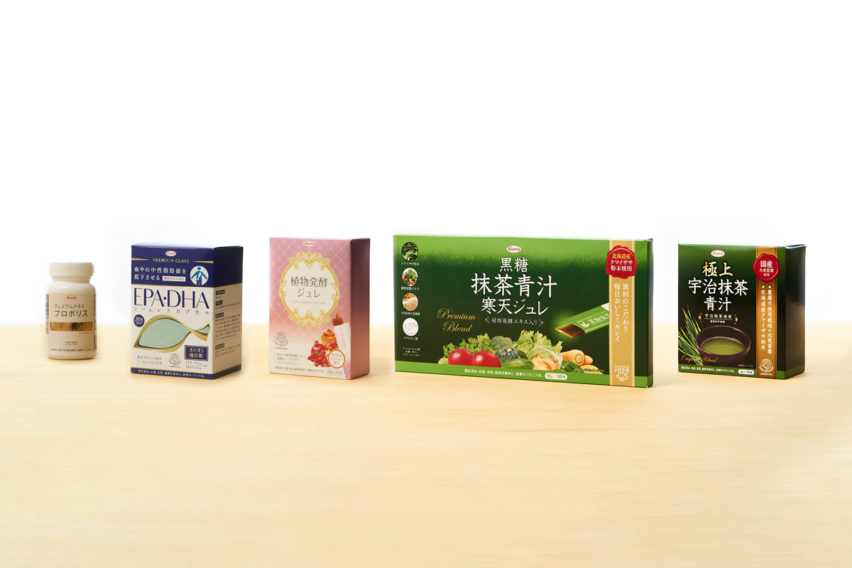 今は、医薬部外品・食品のドリンク剤、食品・サプリメント、雑貨類の商品開発にたずさわっています。ドリンクやサプリメント、雑貨品にいたるまで、有効性・機能性と安全性の両面で、科学的根拠にもとづいて開発しています。ドリンク類やジュレ製品は、味にもこだわっていますね。美味しさは、続けていただくために大事なポイント。発売以来、「『黒糖抹茶青汁寒天ジュレ』美味しい!」という感想を数多くいただき、めちゃくちゃうれしいです。