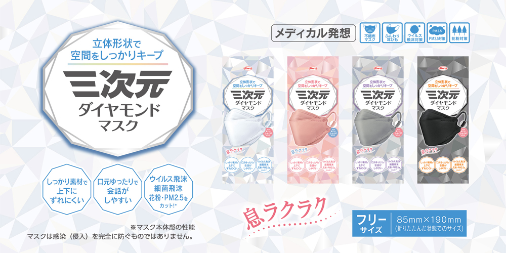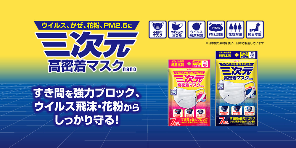 ウイルス飛沫、花粉からしっかり守る、メディカル発想のマスク