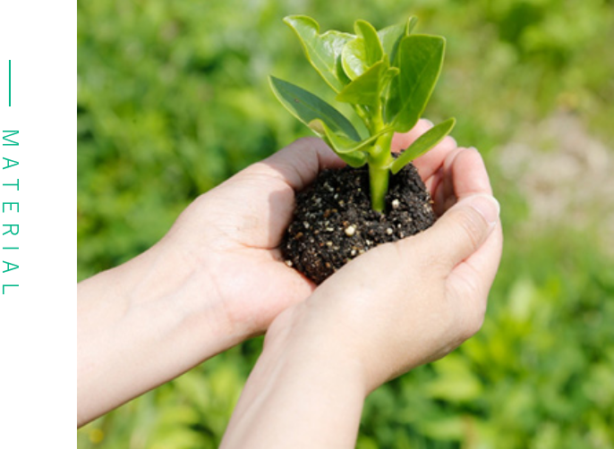 天然素材・エコ化学繊維などを積極的に取り入れます。